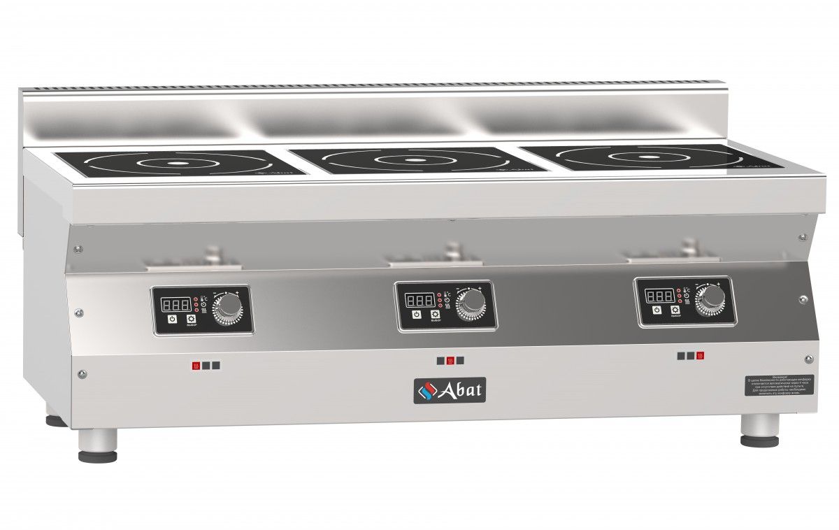 - стеклокерамическая рабочая поверхность толщиной 6 мм - полностью из нержавеющей стали - независимые индукторы - три зоны нагрева - плавная регулировка температуры нагрева от +60 до +240 °С (значения мощности нагрева от "1" до "9") - в обычном режиме максимальная потребляемая мощность при работе одной зоны нагрева - 3,5 кВт - в обычном режиме максимальная потребляемая мощность при работе всех конфорок - 3х3,5=10,5 кВт - минимальный диаметр посуды - 120 мм - максимальный диаметр посуды - 270 мм - вентиляторы охлаждения включаются автоматически при достижении температуры +40 °С внутри плиты и отключаются при понижении температуры до +35 °С - автоматическое отключение индукторов при отсутствии посуды - моющийся легкосъемный жироулавливающий фильтр - защита от скачков напряжения - в комплекте сетевой кабель, рассчитанный на напряжение 400 В, с заземляющим контактом - может устанавливаться на модуль нижний МН-35 Режимы работы: - режим нагрева по мощности (работает по умолчанию при включении зоны нагрева) - режим нагрева по температуре - режим таймера по мощности (таймер от 1 мин до 180 мин) - режим таймера по температуре (таймер от 1 мин до 180 мин)