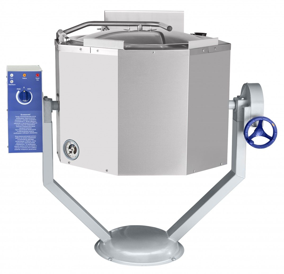 - цельнотянутый (без сварных швов) варочный сосуд из аустенитной нержавеющей стали марки AISI 304; - по запросу возможно изготовление варочного сосуда из кислотостойкой нержавеющей стали марки AISI 316; - корпус из аустенитной нержавеющей стали AISI 304; - объем варочного сосуда 100 л; - опрокидывание с помощью ручного привода; - максимальный угол опрокидывания - 100° - аналоговая панель управления; - температура приготовления продукта до +100 °С; - кран залива воды в варочный сосуд; - откидная крышка фиксируется в верхнем положении; - котел поставляется с монтажной бетонируемой в пол подставкой , под фундаментные болты М10х100 мм. Главным преимуществом газового котла КПГМ-100-ОР является экономичность его эксплуатации: стоимость потребляемого газа в 3 раза ниже, чем стоимость электроэнергии, потребляемой за такое же время работы.