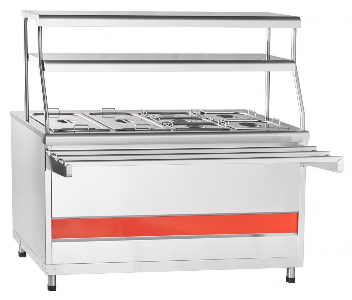 - 2 полки, - гастроемкости в комплекте, - тепловой шкаф, - LED-подсветка - экономичность и ровный комфортный свет без пульсации, - направляющие без стыков - мы позаботились о качестве сервиса в Вашем кафе: супы и напитки не прольются во время движения подноса (идут в комплекте), - регулируемые по высоте ножки.