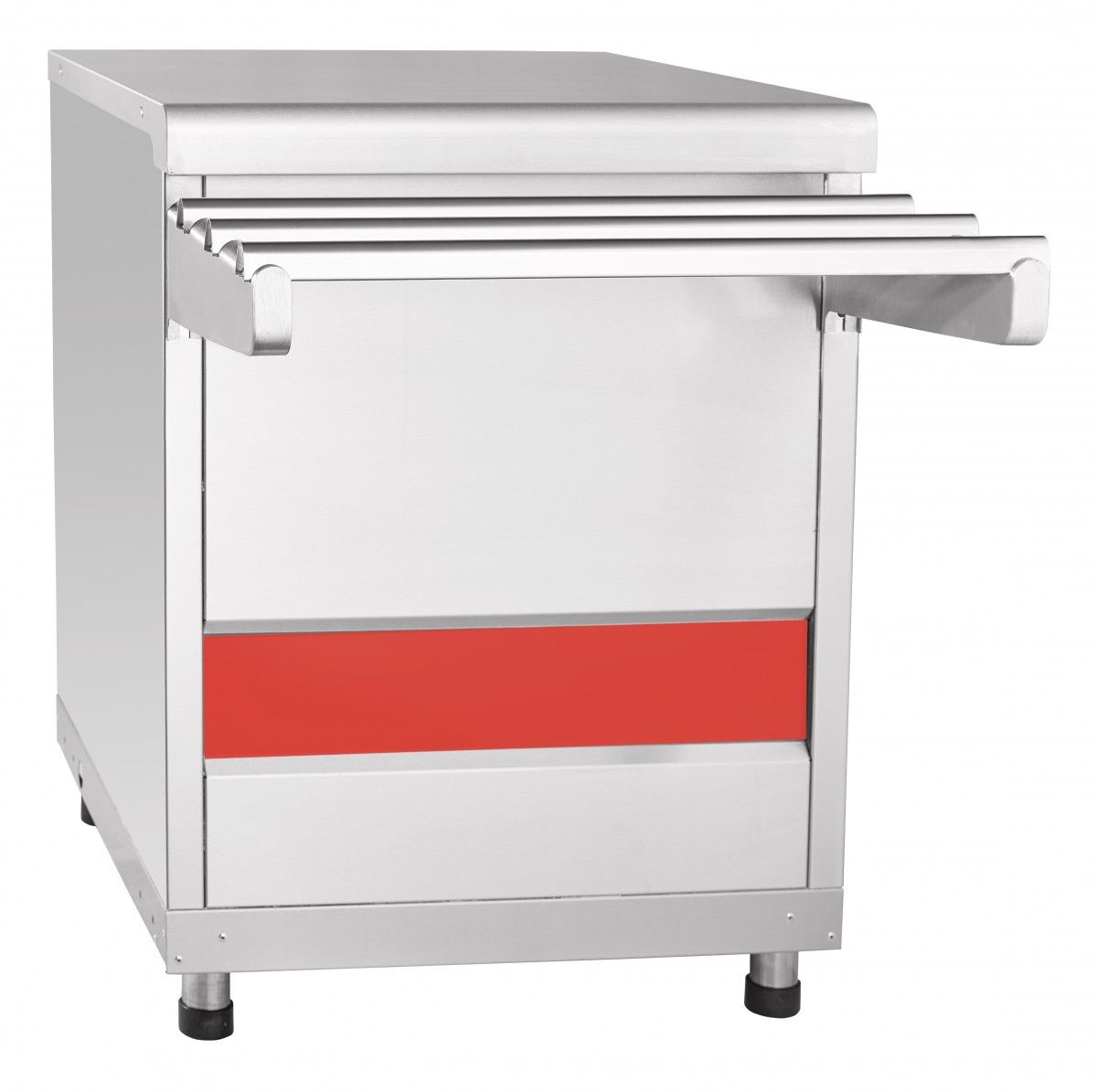 - направляющие без стыков - мы позаботились о качестве сервиса в Вашем кафе: супы и напитки не прольются во время движения подноса (идут в комплекте), - внизу нейтральный шкаф для хранения кухонного инвентаря, - регулируемые по высоте ножки. При заказе изделия из "кашированного" (декорированного под дерево) металла необходимо обязательно указать его код - 21000803571.