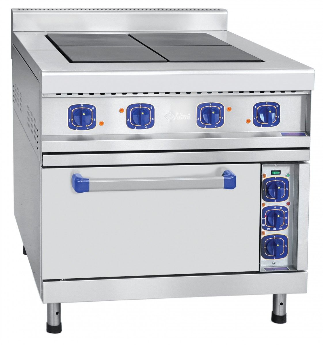 - чугунные конфорки 300х300 мм; - все регуляторы расположены на передней панели: - 7-ми позиционное исполнение регуляторов мощности конфорок; - мощность каждой конфорки 2,8 кВт; - разогрев до +480 °C за 25 минут; - внутренние размеры жарочного шкафа - 538x715x290 мм; - материал изготовления жарочного шкафа - нержавеющая сталь; - в комплекте 2 GN1/1-65 и одна решетка 530x650 мм из нержавеющей стали; - возможность принудительной циркуляции воздуха (конвекции), которая достигается нажатием кнопки для включения вентилятора (клавишный переключатель); - пароувлажнение инжекционного типа достигается нажатием кнопки для управления подачей воды в камеру (без фиксации); - диапазон регулирования температуры жарочного шкафа +20...+270 °C; - разогрев жарочного шкафа до +240 °C за 20 минут; - аварийный терморегулятор от перегрева +320 °C; - 4-х позиционное исполнение регуляторов мощности верхнего и нижнего блоков ТЭНов жарочного шкафа; - регулируемые по высоте ножки.