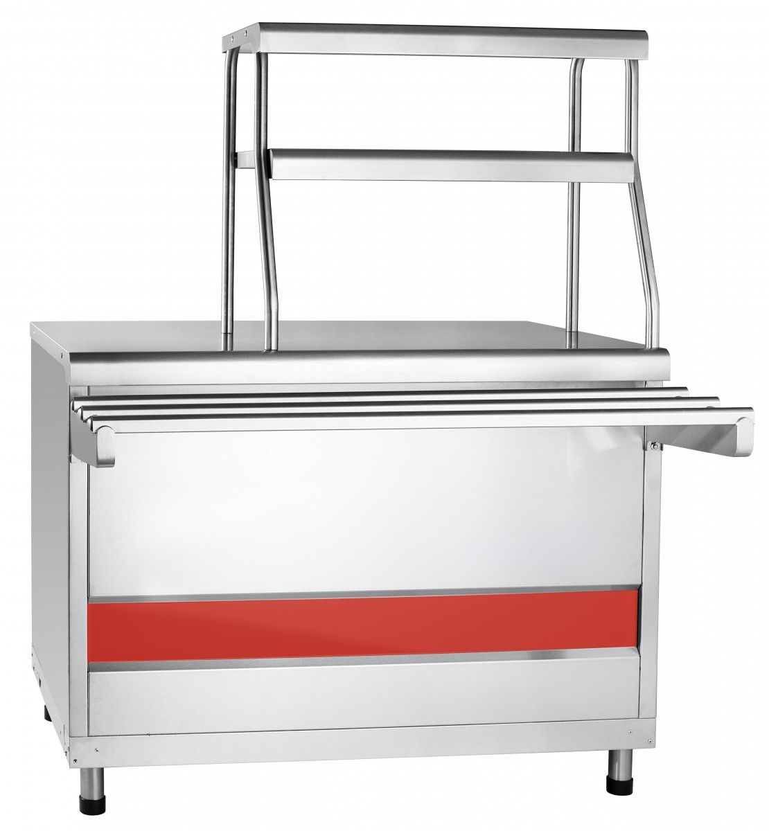 - 2 полки, - 2 розетки на 16 А,, - LED-подсветка - экономичность и ровный комфортный свет без пульсации, - направляющие без стыков - мы позаботились о качестве сервиса в Вашем кафе: супы и напитки не прольются во время движения подноса (идут в комплекте), - внизу нейтральный шкаф для хранения кухонного инвентаря, - регулируемые по высоте ножки.