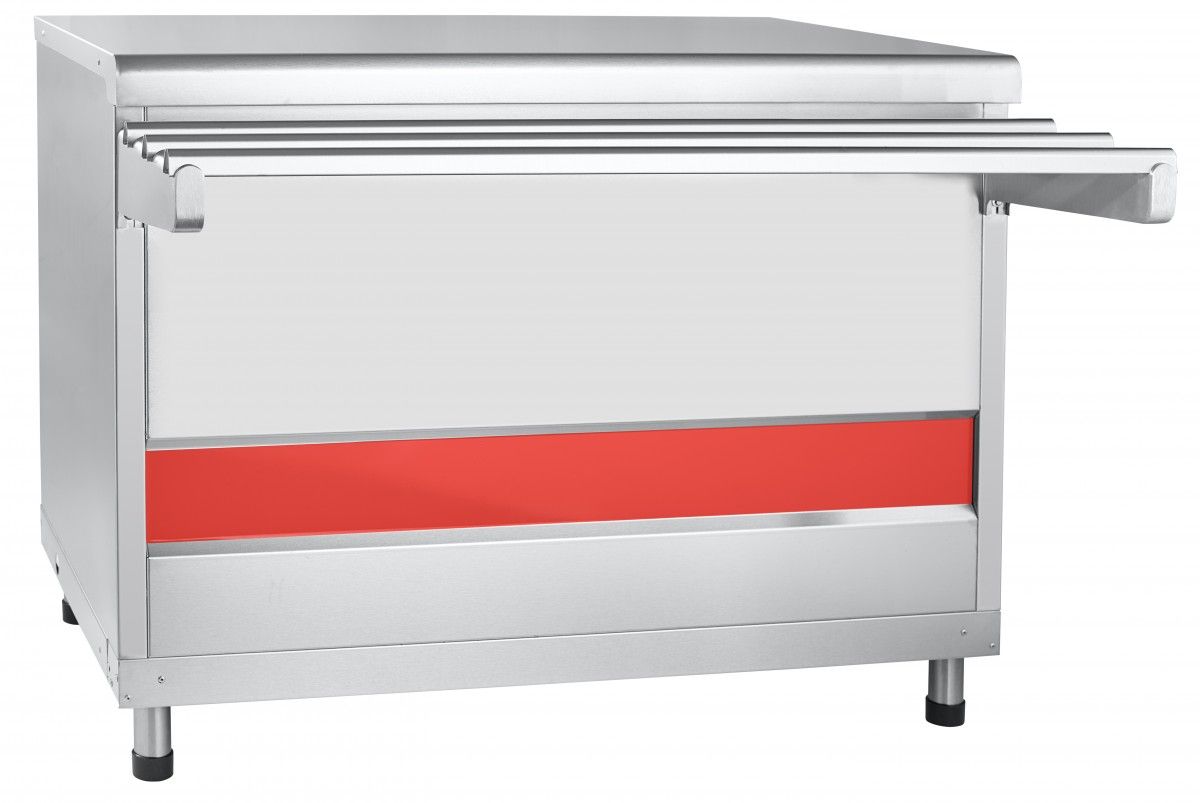 - 2 розетки на 16 А, - направляющие без стыков - мы позаботились о качестве сервиса в Вашем кафе: супы и напитки не прольются во время движения подноса (идут в комплекте), - внизу нейтральный шкаф для хранения кухонного инвентаря, - регулируемые по высоте ножки. При заказе изделия из "кашированного" (декорированного под дерево) металла необходимо обязательно указать его код - 21000802117.