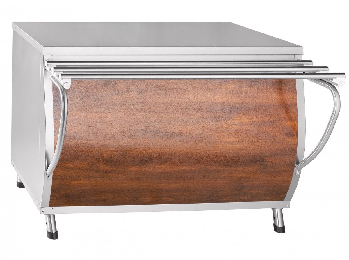 Прилавок для горячих напитков предназначен для кратковременного хранения хлебобулочных и кондитерских изделий, а также для установки на его столе электронагревательный прибор (электрочайник) с напитками. Используется на предприятиях общественного питания самостоятельно или в составе технологических линий