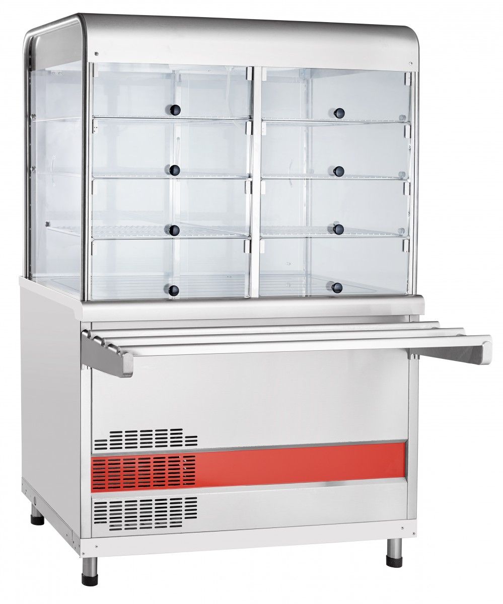 - закрытая витрина, - 3 ряда полок, - нейтральный шкаф для хранения инвентаря (без дверок), - LED-подсветка - экономичность и ровный комфортный свет без пульсации, - направляющие без стыков - мы позаботились о качестве сервиса в Вашем кафе: супы и напитки не прольются во время движения подноса (идут в комплекте), - регулируемые по высоте ножки. При заказе изделия из "кашированного" (декорированного под дерево) металла необходимо обязательно указать его код - 21000007748.