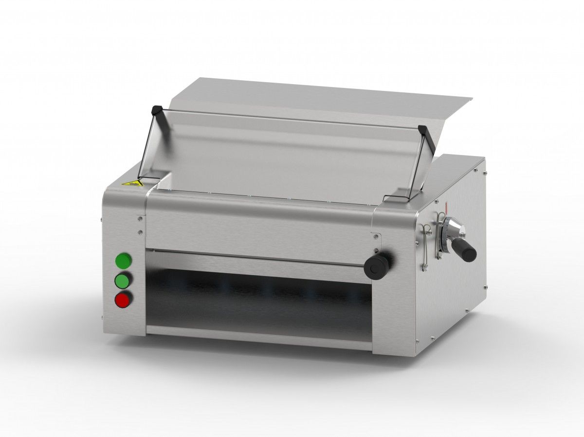 - настольная тестораскаточная машина - ручная регулировка толщины раскатки - рабочая температура +10...+45 °C - скорость раскатки - 0,2 м/сек - количество скоростей - 1 - ширина раскатываемого теста - 400 мм - материал скалок - полированная нержавеющая сталь
