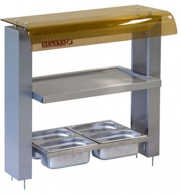 774х380х725 мм, 0.013 кВт, 220 В, подсветка в верхнем ярусе, встраиваемая НАЗНАЧЕНИЕ код: 315545 Стойка СП-774-940-02 для приборов предназначена для хранения столовых приборов, хлеба и подносов. ТЕХНИЧЕСКИЕ ХАРАКТЕРИСТИКИ Габаритные размеры (Д х Ш х В) мм: 774х380х725 Масса кг.: 12,9 ПРЕИМУЩЕСТВА В верхней части стойки расположены светильник и декоративное стекло В средней части находится полка для размещения хлеба Нижняя часть содержит 4 секции для хранения столовых и чайных ложек, вилок и ножей Неограниченное количество вариантов декорирования создаёт возможность вписать линию в любой дизайн интерьера заведения Может быть оснащён направляющей для хранения подносов Большой выбор вариантов облицовки: натуральное дерево, искусственный камень, ламинированная ДСП, скинали, нержавеющая сталь ТЕХНИЧЕСКОЕ ОПИСАНИЕ Конструкция сборная, бескаркасная. Стойки выполнены из нержавеющей стали AISI430. В верхней части стойки расположены светильник и декоративное стекло. В средней части находится полка для размещения хлеба. Нижняя часть оснащена 4-мя нержавеющими гастроемкостями GN1/4 глубиной 100 мм для размещения столовых и чайных ложек, вилок и ножей. Варианты дополнительной комплектации: Регата - тумба-подставка ТП-МПХ- 940-02; Регата - направляющая для подносов НП- 940-02; Регата - направляющая для хранения подносов НХП-940-02; Регата02 - Комплект светильников КСВ- 940-02. ХАРАКТЕРИСТИКИ УПАКОВКИ Количество упаковок, шт.: 2 Габариты в упаковке (ДхШхВ), мм: 795х750х170 Масса в упаковке, кг: 17,56 Тип упаковки: гофрокартонная коробка КОДЫ ИЗДЕЛИЙ ТНВД: 9403208009 ОКПД2: 31.02.10.190