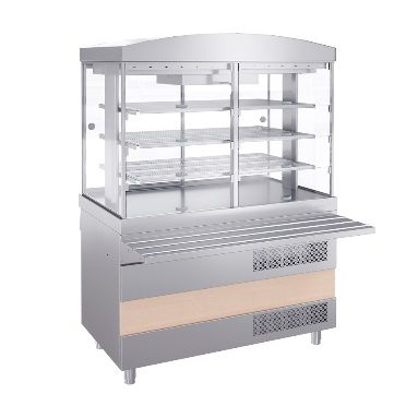 1120 х 700 (1015*) х 1805 ± 20 мм, 0,8 кВт, 220 В *с направляющей НАЗНАЧЕНИЕ код: 315860 Холодильная витрина предназначена для кратковременного хранения, демонстрации и раздачи холодных напитков, салатов, кисломолочных продуктов и других блюд, требующих хранения в охлажденном состоянии. ТЕХНИЧЕСКИЕ ХАРАКТЕРИСТИКИ Габаритные размеры (Д х Ш х В), мм: 1120 х 1015 х 880 ± 20 Номинальная мощность, кВт: 0,9 Номинальное напряжение, В: 220 Температура в гастроемкостях, °C: +2…+10 Объем витрины, м3: 0,52 Площадь выкладки, м2: 2,28 Хладагент - R404А Масса, кг: 180,0 ПРЕИМУЩЕСТВА Внутренний объем витрины равномерно охлаждается эффективной динамической системой, оснащенной мощным вентилятором Температура полезного объема в диапазоне от +2 до +10 градусов, поддерживается во всех точках витрины, обеспечивая оптимальные условия для хранения продуктов Три съемные перфорированные полки, выполненные из нержавеющей стали, не препятствуют распределению потоков холодного воздуха Витрина, стенки которой изготовлены из стеклопакетов, имеет высокий уровень теплоизоляции, что способствует экономии электроэнергии Самозакрывающиеся дверцы со стороны клиента, оснащенные механизмом, препятствуют потере холода В верхней части витрины установлены две лампы: яркая подсветка позволяет представить Вашу продукцию в наиболее выгодном ракурсе Простая и легкозаменяемая передняя панель модуля, изменяющая дизайн линии, позволяет создать необходимый интерьер в заведении любого типа Беспрепятственное и легкое скольжение подносов по направляющим благодаря специальным выпуклым элементам Регулируемые опорные ножки из нержавеющей стали компенсируют неровности пола Возможна модернизация в передвижной модуль при помощи Комплекта колес для электр. модуля Ривьера ТЕХНИЧЕСКОЕ ОПИСАНИЕ Конструкция сборная, бескаркасная. Столешница выполнена из нержавеющей стали AISI430 и усилена листом ламинированной ДСП толщиной 16 мм. На столешнице смонтирована холодильная витрина. Боковые стенки и двери-купе со стороны обслуживающего персонала выполнены из стеклопакетов. Самозакрывающиеся дверцы со стороны покупателя изготовлены из оргстекла. Внутренняя часть витрины подсвечивается с помощью двух светильников. Витрина имеет три полки, которые выполнены из нержавеющей стали. Полки легко снимаются для осуществления санитарной обработки. Перфорация на полках позволяет холоду равномерно заполнять весь объем витрины. Охлаждение объема витрины осуществляется эффективной динамической системой, оснащенной мощным вентилятором. Температура полезного объема внутри витрины автоматически поддерживается в пределах +2°C …+10°C. В холодильной системе используется хладагент R404А. Ножки модуля выполнены из нержавеющей стали, имеют пластиковую опорную часть и регулируют высоту модуля в пределах ±20 мм. В комплект модуля входит направляющая для подносов (1120х315 мм), выполненная из нержавеющей стали. Направляющая представляет собой сплошную поверхность с выпуклыми формовками для облегчения скольжения подносов. Направляющая витрины может соединяться с направляющими соседних модулей, формируя сплошную ровную поверхность. Вдоль всей фасадной части под столешницей расположена сменная декоративная панель 1120х190 мм. В верхней фасадной части витрины размещен сменный фриз. Модуль может дополнительно оснащаться светильнико