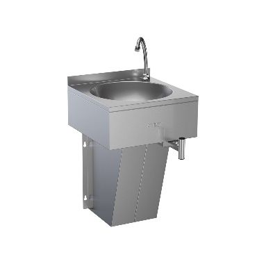 400х500х615 мм, облицовка - AISI 430, ванна - 400х400 мм AISI430 НАЗНАЧЕНИЕ код: 315728 Рукомойники консольные предназначены для использования в производственном и моечном отделении предприятия общественного питания, а также в передвижных киосках - тонарах для мытья рук работников. ТЕХНИЧЕСКИЕ ХАРАКТЕРИСТИКИ Габаритные размеры (ДхШхВ), мм: 400х500х615 Внутренние размеры ванны (ДхШхВ), мм: 400х400х120 Наличие пристенного борта: да Высота пристенного борта, мм: 20 Диаметр сливного отверстия, мм: 48 Отверстие под смеситель: да Материал рукомойника: нержавеющая сталь AISI430 Толщина металла ванны, мм: 0,8 Масса, кг: 10,5 ПРЕИМУЩЕСТВА Мойка и корпус рукомойника изготовлена из нержавеющей стали, что значительно упрощает санитарно-гигиеническую обработку Все кромки рукомойника и элементов каркаса имеют подгиб (фальцовку), что полностью исключает получение травмы персоналом при сборке, эксплуатации и санитарной обработке Углы рукомойника заварены и зашлифованы, что обеспечивает гигиеническую безопасность и облегчает санитарную обработку Рукомойник оснащен бедренным рычагом, что позволяет осуществлять быстрое включение без применения рук Крепится на стену, что позволяет установить его на удобной для персонала высот Благодаря доступной регулировке можно легко настроить необходимую температуру воды В комплект поставки входит весь необходимый крепеж ТЕХНИЧЕСКОЕ ОПИСАНИЕ Мойка и корпус выполнены из нержавеющей стали марки AISI 430 толщиной 0,8 мм, имеет борт с пристенной стороны и смеситель, также укомплектована сливным сифоном с гидрозатвором. Рукомойник размещается на стене с подключением к водопроводной сети и канализации. Подача воды осуществляется с помощью поворотного механизма для регулирования напора воды, который расположен под раковиной. Механизм может приводиться в действие бедром работника, обеспечивая быструю подачу воды. В комплект поставки входит крепеж для стены. ХАРАКТЕРИСТИКИ УПАКОВКИ Количество упаковок, шт.: 1 Габариты в упаковке (ДхШхВ), мм: 510х430х290 Масса в упаковке, кг: 11,5 Тип упаковки: гофрокартонная коробка КОДЫ ИЗДЕЛИЙ ТНВД: 7324290000 ОКПД2: 25.99.11 Склад