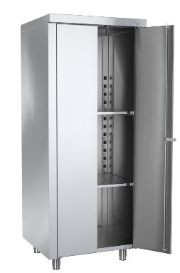 800х600х1730 мм, AISI430, двери распашные с замком НАЗНАЧЕНИЕ код: 315390 Шкаф закрытый кухонный ШЗК-С серии «стандарт» предназначен для использования в различных цехах предприятий общественного питания: - моечные отделения: для кратковременного и длительного хранения посуды, баков, котлов; - кладовые: для хранения сухих видов продуктов; - специализированные цеха (горячие, салатные, мясные и т. д.), где требуется размещение посуды или продуктов в непосредственной близости от рабочего места повара. ТЕХНИЧЕСКИЕ ХАРАКТЕРИСТИКИ Габаритные размеры (Д х Ш х В), мм: 800х600х1730 Количество полок, шт.: 2 Максимальная равномерно распределенная нагрузка на полку, кг: 30 Материал шкафа: нержавеющая сталь AISI430 Толщина металла шкафа, мм: 0,8 Материал дна и задней стенки шкафа: оцинкованная сталь Толщина металла дна и задней стенки, мм: 1,2 Вид дверей: распашные Замок двери: да Диапазон регулировки опорных ножек, мм: ±20 Масса, кг: 75,0 ПРЕИМУЩЕСТВА Все элементы шкафа, кроме дна и задней стенки, изготовлены из нержавеющей стали AISI 430 Ножки шкафа имеют регулируемые по высоте опоры, позволяющие компенсировать неровности пола в пределах ±20 мм Опорные ножки имеют пластиковое основание, которое не повреждает напольное покрытие при эксплуатации подставки Углы шкафа заварены и зашлифованы, что обеспечивает гигиеническую безопасность и облегчает санитарную обработку Наличие полок с возможностью менять их высоту с шагом 100 мм, позволяет увеличить полезное пространство в шкафу размещая на них посуду, инвентарь, столовые приборы и сухие виды продуктов Все кромки полок имеют подгиб, что полностью исключает получение травмы персоналом при сборке, эксплуатации и санитарной обработке шкафа Полки снизу усилены ребром жесткости ТЕХНИЧЕСКОЕ ОПИСАНИЕ Шкаф закрытый кухонный ШЗК имеет сборную бескаркасную конструкцию. Все элементы шкафа, кроме дна и задней стенки, изготовлены из нержавеющей стали AISI 430 толщиной 0,8 мм. Дно и задняя стенка изготовлены из оцинкованной стали. Внутри шкафа расположены две полки. Конструкция шкафа позволяет изменять высоту полок с шагом 100 мм. Шкаф оснащен двумя распашными дверями с замком. Ножки шкафа изготовлены из нержавеющей стали, имеют пластиковую опорную часть и диапазон регулировки ±20 мм. ХАРАКТЕРИСТИКИ УПАКОВКИ Количество упаковок, шт.: 1 Габариты в упаковке (ДхШхВ), мм: 810х653х1 774 Масса в упаковке, кг: 76,2 Тип упаковки: в гофрокартоне на поддоне КОДЫ ИЗДЕЛИЙ ТНВД: 9403208009 ОКПД2: 31.02.10.120 Под заказ