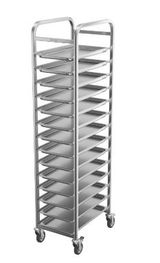390х600х1790 мм, сварная, AISI304, вместимость GN-1/1 - 14шт, расстояние между уровнями 110 мм, 2 колеса с тормозом НАЗНАЧЕНИЕ код: 318882 Изделие «Шпилька кондитерская» серии «люкс» предназначена для технологического хранения и транспортировки Гастроемкостей 1.1 (размером 325х530) внутри цеха, а также по территории предприятия. ТЕХНИЧЕСКИЕ ХАРАКТЕРИСТИКИ Габаритные размеры (Д х Ш х В), мм: 390х600х1790 Количество уровней: 14 Расстояние между уровнями, мм: 110 Максимальная распределенная нагрузка общая, кг: 160 Максимальная распределенная нагрузка на одну полку, кг: 10 Материал направляющих: нержавеющая сталь AISI 304 Материал стоек: нержавеющая сталь Толщина металла стоек, мм: 1,5 Профиль стоек: квадратная труба Размер профиля стоек, мм: 25х25 Колесная опора без тормоза, шт: 2 Колесная опора с тормозом, шт: 2 Диаметр поворотных колес, мм: 100 Масса, кг: 19,5 ПРЕИМУЩЕСТВА Шпилька выполнена из нержавеющей стали AIS304 Направляющие из листа имеют отгиб на концах, предотвращающий выпадение емкостей при перемещении шпильки Кромки направляющих имеют подгиб (фальцовку) для исключения травматизма персонала Две из четырёх колёсных опор оснащены тормозом ТЕХНИЧЕСКОЕ ОПИСАНИЕ Шпилька для гастроемкостей имеет сварную конструкцию. Рамы шпильки изготовлены из нержавеющей трубы AISI 304 сечением 25х25 мм. Рамы приварены друг к другу посредством перемычек из профильной нержавеющей трубы. К рамам приварены 14 пар направляющих для размещения гастроемкостей GN1/1. Направляющие изготовлены из нержавеющей стали AISI 304. Они имеют концевые отгибы, обеспечивающие фиксацию противней и предотвращающие их выпадение при движении шпильки. Расстояние между направляющими по высоте – 110 мм. Кромки направляющих имеют подгиб (фальцовку) для исключения травматизма персонала. Суммарная грузоподъемность тележки составляет 160 кг. Нагрузка на каждый уровень направляющих не должна превышать 10 кг. Шпилька снабжена четырьмя колесами диаметром 100 мм, два из которых оснащены тормозом. ХАРАКТЕРИСТИКИ УПАКОВКИ Количество упаковок, шт.: 1 Габариты в упаковке (ДхШхВ), мм: 605х440х1815 Масса в упаковке, кг: 28 Тип упаковки: Гофрокартонная коробка КОДЫ ИЗДЕЛИЙ ТНВД: ОКПД2: 25.99.12.112 Под заказ
