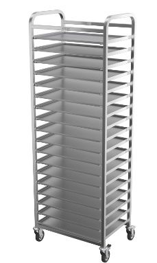 590х680х1900 мм, сварная, AISI304, вместимость GN-2/1 - 18шт (GN1/1 - 36шт.), расстояние между уровнями 90 мм, 2 колеса с тормозом НАЗНАЧЕНИЕ код: 318093 Изделие «Шпилька кондитерская» серии «люкс» предназначена для технологического хранения и транспортировки Гастроемкости 2.1 ( 530х650 мм) внутри цеха, а также по территории предприятия. ТЕХНИЧЕСКИЕ ХАРАКТЕРИСТИКИ Габаритные размеры (Д х Ш х В), мм: 590х680х1900 Количество уровней: 18 Расстояние между уровнями, мм: 90 Максимальная распределенная нагрузка общая, кг: 160 Максимальная распределенная нагрузка на одну полку, кг: 10 Материал направляющих: нержавеющая сталь AISI 304 Материал стоек: нержавеющая сталь Толщина металла стоек, мм: 1,5 Профиль стоек: квадратная труба Размер профиля стоек, мм: 25х25 Колесная опора без тормоза, шт: 2 Колесная опора с тормозом, шт: 2 Диаметр поворотных колес, мм: 100 Масса, кг: 23,5 ПРЕИМУЩЕСТВА Шпилька выполнена из нержавеющей стали AIS304 Направляющие из листа имеют отгиб на концах, предотвращающий выпадение емкостей при перемещении шпильки Кромки направляющих имеют подгиб (фальцовку) для исключения травматизма персонала Две из четырёх колёсных опор оснащены тормозом ТЕХНИЧЕСКОЕ ОПИСАНИЕ Шпилька для гастроемкостей имеет сварную конструкцию. Рамы шпильки изготовлены из нержавеющей трубы AISI 304 сечением 25х25 мм. Рамы приварены друг к другу посредством перемычек из профильной нержавеющей трубы. К рамам приварены 18 пар направляющих для размещения гастроемкостей GN2/1. Направляющие изготовлены из нержавеющей стали AISI 304. Они имеют концевые отгибы, обеспечивающие фиксацию противней и предотвращающие их выпадение при движении шпильки. Расстояние между направляющими по высоте – 90 мм. Кромки направляющих имеют подгиб (фальцовку) для исключения травматизма персонала. Суммарная грузоподъемность тележки составляет 160 кг. Нагрузка на каждый уровень направляющих не должна превышать 10 кг. Шпилька снабжена четырьмя колесами диаметром 100 мм, два из которых оснащены тормозом. ХАРАКТЕРИСТИКИ УПАКОВКИ Количество упаковок, шт.: 1 Габариты в упаковке (ДхШхВ), мм: 730х640х1935 Масса в упаковке, кг: 32 Тип упаковки: Гофрокартонная коробка КОДЫ ИЗДЕЛИЙ ТНВД: 9403208009 ОКПД2: 25.99.12.112 Под заказ