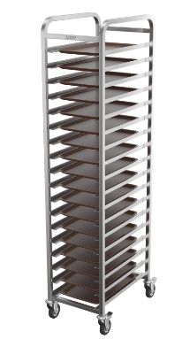 415х600х1900 мм, сварная, AISI304, вместимость подносов 350х600 мм - 18шт., расстояние между уровнями 90 мм, 2 колеса с тормозом НАЗНАЧЕНИЕ код: 318094 Изделие «Шпилька кондитерская» серии «люкс» предназначена для технологического хранения и транспортировки Подносов 350х600мм внутри цеха, а также по территории предприятия. ТЕХНИЧЕСКИЕ ХАРАКТЕРИСТИКИ Габаритные размеры (Д х Ш х В), мм: 415х600х1900 Количество уровней: 18 Расстояние между уровнями, мм: 90 Максимальная распределенная нагрузка общая, кг: 160 Максимальная распределенная нагрузка на одну полку, кг: 10 Материал направляющих: нержавеющая сталь AISI 304 Материал стоек: нержавеющая сталь Толщина металла стоек, мм: 1,5 Профиль стоек: квадратная труба Размер профиля стоек, мм: 25х25 Колесная опора без тормоза, шт: 2 Колесная опора с тормозом, шт: 2 Диаметр поворотных колес, мм: 100 Масса, кг: 27 ПРЕИМУЩЕСТВА Шпилька выполнена из нержавеющей стали AIS304 Направляющие из листа имеют отгиб на концах, предотвращающий выпадение емкостей при перемещении шпильки Кромки направляющих имеют подгиб (фальцовку) для исключения травматизма персонала Две из четырёх колёсных опор оснащены тормозом ТЕХНИЧЕСКОЕ ОПИСАНИЕ Шпилька для гастроемкостей имеет сварную конструкцию. Рамы шпильки изготовлены из нержавеющей трубы AISI 304 сечением 25х25 мм. Рамы приварены друг к другу посредством перемычек из профильной нержавеющей трубы. К рамам приварены 18 пар направляющих для размещения подносов 350х600мм. Направляющие изготовлены из нержавеющей стали AISI 304. Они имеют концевые отгибы, обеспечивающие фиксацию противней и предотвращающие их выпадение при движении шпильки. Расстояние между направляющими по высоте – 90 мм. Кромки направляющих имеют подгиб (фальцовку) для исключения травматизма персонала. Суммарная грузоподъемность тележки составляет 160 кг. Нагрузка на каждый уровень направляющих не должна превышать 10 кг. Шпилька снабжена четырьмя колесами диаметром 100 мм, два из которых оснащены тормозом. ХАРАКТЕРИСТИКИ УПАКОВКИ Количество упаковок, шт.: 1 Габариты в упаковке (ДхШхВ), мм: 650х465х1935 Масса в упаковке, кг: 35,8 Тип упаковки: Гофрокартонная коробка КОДЫ ИЗДЕЛИЙ ТНВД: 9403208009 ОКПД2: 25.99.12.112 Под заказ