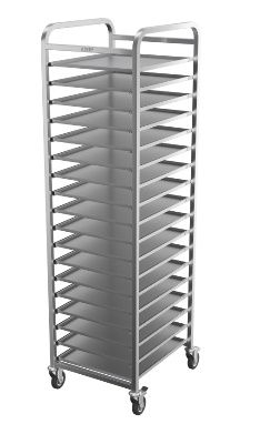 530х600х1900 мм, сварная, AISI304, вместимость противней 470х580мм - 18шт., расстояние между уровнями 90 мм, 2 колеса с тормозом НАЗНАЧЕНИЕ код: 318091 Изделие «Шпилька кондитерская» серии «люкс» предназначена для технологического хранения и транспортировки Противнией 470х580мм внутри цеха, а также по территории предприятия. ТЕХНИЧЕСКИЕ ХАРАКТЕРИСТИКИ Габаритные размеры (Д х Ш х В), мм: 530х600х1900 Количество уровней: 18 Расстояние между уровнями, мм: 90 Максимальная распределенная нагрузка общая, кг: 160 Максимальная распределенная нагрузка на одну полку, кг: 10 Материал направляющих: нержавеющая сталь AISI 304 Материал стоек: нержавеющая сталь Толщина металла стоек, мм: 1,5 Профиль стоек: квадратная труба Размер профиля стоек, мм: 25х25 Колесная опора без тормоза, шт: 2 Колесная опора с тормозом, шт: 2 Диаметр поворотных колес, мм: 100 Масса, кг: 22 ПРЕИМУЩЕСТВА Шпилька выполнена из нержавеющей стали AIS304 Направляющие из листа имеют отгиб на концах, предотвращающий выпадение емкостей при перемещении шпильки Кромки направляющих имеют подгиб (фальцовку) для исключения травматизма персонала Две из четырёх колёсных опор оснащены тормозом ТЕХНИЧЕСКОЕ ОПИСАНИЕ Шпилька для противней имеет сварную конструкцию. Рамы шпильки изготовлены из нержавеющей трубы AISI 304 сечением 25х25 мм. Рамы приварены друг к другу посредством перемычек из профильной нержавеющей трубы. К рамам приварены 18 пар направляющих для размещения противней размером 470х580 мм. Направляющие изготовлены из нержавеющей стали AISI 304. Они имеют концевые отгибы, обеспечивающие фиксацию противней и предотвращение их выпадения при движении шпильки. Расстояние между направляющими по высоте – 90 мм. Кромки направляющих имеют подгиб (фальцовку) для исключения травматизма персонала. Суммарная грузоподъемность тележки составляет 160 кг. Нагрузка на каждый уровень направляющих не должна превышать 10 кг. Тележка снабжена четырьмя колесами диаметром 100 мм, два из которых оснащены тормозом. ХАРАКТЕРИСТИКИ УПАКОВКИ Количество упаковок, шт.: 1 Габариты в упаковке (ДхШхВ), мм: 650х580х1935 Масса в упаковке, кг: 31,5 Тип упаковки: Гофрокартонная коробка КОДЫ ИЗДЕЛИЙ ТНВД: 9403208009 ОКПД2: 25.99.12.112 Под заказ