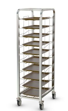 600х440х1620 мм, сварная, AISI304, вместимость подносов шириной от 300 до 350 мм и длиной до 600мм - 10шт., расстояние между уровнями 140 мм, 2 колеса с тормозом НАЗНАЧЕНИЕ код: 297299 Шпилька для подносов предназначена для перемещения подносов с грязной посудой из зала приема пищи в моечное отделение. ТЕХНИЧЕСКИЕ ХАРАКТЕРИСТИКИ Габаритные размеры (Д х Ш х В) длина и ширина по каркасу, без учета колесных опор, мм: 600х440х1620 Количество уровней: 10 Расстояние между уровнями, мм: 140 Максимальная распределенная нагрузка общая, кг: 160 Максимальная распределенная нагрузка на одну полку, кг: 10 Материал стоек: нержавеющая сталь Толщина металла стоек, мм: 1,5 Профиль стоек: квадратная труба Размер профиля стоек, мм: 25х25 Колесная опора без тормоза, шт: 2 Колесная опора с тормозом, шт: 2 Диаметр поворотных колес, мм: 100 Масса, кг: 23 ПРЕИМУЩЕСТВА Шпилька выполнена из нержавеющей стали AIS304 Конструкция направляющих обеспечивает фиксацию подносов и предотвращает их выпадение при движении шпильки Кромки направляющих имеют подгиб (фальцовку) для исключения травматизма персонала Две из четырёх колёсных опор оснащены тормозом ТЕХНИЧЕСКОЕ ОПИСАНИЕ Шпилька для столовых подносов имеет сварную конструкцию. Рамы шпильки изготовлены из нержавеющей трубы AISI 304 сечением 25х25 мм. Рамы приварены друг к другу посредством перемычек из профильной нержавеющей трубы. На рамах установлены две секции из нержавеющего прутка AISI 304, которые формируют 10 пар направляющих для подносов шириной от 300 до 370 мм и длиной до 600 мм. Конструкция направляющих обеспечивает фиксацию подносов и предотвращает их выпадение при движении шпильки. Расстояние между направляющими по высоте – 140 мм. Суммарная грузоподъемность тележки составляет 160 кг. Нагрузка на каждый уровень направляющих не должна превышать 10 кг. Тележка снабжена четырьмя колесами диаметром 100 мм, два из которых оснащены тормозом. ХАРАКТЕРИСТИКИ УПАКОВКИ Количество упаковок, шт.: 1 Габариты в упаковке (ДхШхВ), мм: 649х505х1645 Масса в упаковке, кг: 27,5 Тип упаковки: Гофрокартонная коробка КОДЫ ИЗДЕЛИЙ ТНВД: ОКПД2: 25.99.12.112 Склад