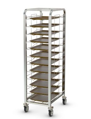 600х440х1575 мм, сварная, AISI304, вместимость подносов шириной от 300 до 350 мм и длиной до 600мм - 12шт., расстояние между уровнями 113 мм, 2 колеса с тормозом НАЗНАЧЕНИЕ код: 318096 Шпилька для подносов предназначена для перемещения подносов с грязной посудой из зала приема пищи в моечное отделение. ТЕХНИЧЕСКИЕ ХАРАКТЕРИСТИКИ Габаритные размеры (Д х Ш х В) длина и ширина по каркасу, без учета колесных опор, мм: 600х440х1575 Количество уровней: 12 Расстояние между уровнями, мм: 113 Максимальная распределенная нагрузка общая, кг: 160 Максимальная распределенная нагрузка на одну полку, кг: 10 Материал стоек: нержавеющая сталь Толщина металла стоек, мм: 1,5 Профиль стоек: квадратная труба Размер профиля стоек, мм: 25х25 Колесная опора без тормоза, шт: 2 Колесная опора с тормозом, шт: 2 Диаметр поворотных колес, мм: 100 Масса, кг: 23,5 ПРЕИМУЩЕСТВА Шпилька выполнена из нержавеющей стали AIS304 Конструкция направляющих обеспечивает фиксацию подносов и предотвращает их выпадение при движении шпильки Кромки направляющих имеют подгиб (фальцовку) для исключения травматизма персонала Две из четырёх колёсных опор оснащены тормозом ТЕХНИЧЕСКОЕ ОПИСАНИЕ Шпилька для столовых подносов имеет сварную конструкцию. Рамы шпильки изготовлены из нержавеющей трубы AISI 304 сечением 25х25 мм. Рамы приварены друг к другу посредством перемычек из профильной нержавеющей трубы. На рамах установлены две секции из нержавеющего прутка AISI 304, которые формируют 12 пар направляющих для подносов шириной от 300 до 350 мм и длиной до 600 мм. Конструкция направляющих обеспечивает фиксацию подносов и предотвращает их выпадение при движении шпильки. Расстояние между направляющими по высоте – 113 мм. Суммарная грузоподъемность тележки составляет 160 кг. Нагрузка на каждый уровень направляющих не должна превышать 10 кг. Тележка снабжена четырьмя колесами диаметром 100 мм, два из которых оснащены тормозом. ХАРАКТЕРИСТИКИ УПАКОВКИ Количество упаковок, шт.: 1 Габариты в упаковке (ДхШхВ), мм: 649х505х1605 Масса в упаковке, кг: 28 Тип упаковки: Гофрокартонная коробка КОДЫ ИЗДЕЛИЙ ТНВД: 9403208009 ОКПД2: 25.99.12.112 Склад