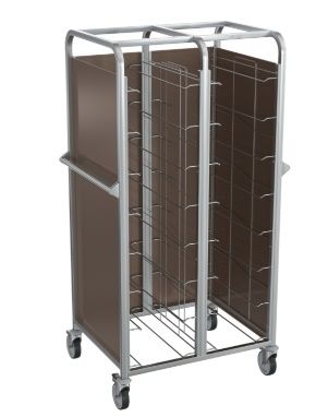 880х710х1641 мм, AISI304, 2 секции по 16 уровней в каждой, размер подноса 330х600 мм, расстояние между уровнями 175 мм, 2 колеса с тормозом, 2 колеса без тормоза. НАЗНАЧЕНИЕ код: 318644 Шпилька для подносов предназначена для перемещения подносов с грязной посудой из зала приема пищи в моечное отделение. ТЕХНИЧЕСКИЕ ХАРАКТЕРИСТИКИ Габаритные размеры (Д х Ш х В) длина и ширина по каркасу, без учета колесных опор, мм: 880х710х1641 Количество уровней: 8х2 Расстояние между уровнями, мм: 175 Максимальная распределенная нагрузка общая, кг: 160 Максимальная распределенная нагрузка на одну полку, кг: 10 Комплект съемных обшивок из углеродистой стали, окрашенных порошковой краской: да Материал стоек: нержавеющая сталь Толщина металла стоек, мм: 1,5 Профиль стоек: квадратная труба Размер профиля стоек, мм: 25х25 Колесная опора без тормоза, шт: 2 Колесная опора с тормозом, шт: 2 Диаметр поворотных колес, мм: 125 Масса, кг: 62 ПРЕИМУЩЕСТВА Шпилька выполнена из нержавеющей стали AIS304 Конструкция направляющих обеспечивает фиксацию подносов и предотвращает их выпадение при движении шпильки Шпилька комплектуется съемными обшивками из углеродистой стали, окрашенными порошковой краской. Кромки направляющих имеют подгиб (фальцовку) для исключения травматизма персонала Две из четырёх колёсных опор оснащены тормозом ТЕХНИЧЕСКОЕ ОПИСАНИЕ Шпилька для столовых подносов имеет сварную конструкцию. Рамы шпильки изготовлены из нержавеющей трубы AISI 304 сечением 25х25 мм. Рамы приварены друг к другу посредством перемычек из профильной нержавеющей трубы. На рамах установлены две секции из нержавеющего прутка AISI 304, которые формируют 8х2 пар направляющих для подносов шириной от 330 до 370 мм и длиной до 600 мм. Конструкция направляющих обеспечивает фиксацию подносов и предотвращает их выпадение при движении шпильки. Расстояние между направляющими по высоте – 175 мм. Шпилька комплектуется съемными обшивками из углеродистой стали, окрашенными порошковой краской. Суммарная грузоподъемность тележки составляет 160 кг. Нагрузка на каждый уровень направляющих не должна превышать 10 кг. Тележка снабжена четырьмя колесами диаметром 125 мм, два из которых оснащены тормозом. ХАРАКТЕРИСТИКИ УПАКОВКИ Количество упаковок, шт.: 1 Габариты в упаковке (ДхШхВ), мм: 895х660х1675 Масса в упаковке, кг: 65 Тип упаковки: Гофрокартонная коробка КОДЫ ИЗДЕЛИЙ ТНВД: 9403208009 ОКПД2: 25.99.12.112 Под заказ