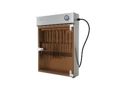 465х145х605 мм, 8 Вт, 220 В, таймер 60 мин, в комплекте решетка на 18 ножей НАЗНАЧЕНИЕ код: 320783 Стерилизатор ножей СТУ-1-18-02-1 предназначен для дезинфекции поварских ножей различных размеров и других инструментов на предприятиях пищевой промышленности, торговли и общественного питания ТЕХНИЧЕСКИЕ ХАРАКТЕРИСТИКИ Габаритные размеры (длина×ширина×высота), мм: 465х145х605 Решетка-держатель на 18 ножей, шт.: 1 Номинальная мощность, Вт: 8 Номинальное напряжение, В: 220 Ртутная лампа низкого давления ДРБ 8-1, шт.: 1 Бактерицидный поток лампы, Вт: 0,16 Средний срок службы лампы, ч: 5 000 Материал колбы: Стекло увиолевое Масса, кг: 24 ПРЕИМУЩЕСТВА Корпус изготовлен из пищевой нержавеющей стали Наличие замка обеспечивает сохранность ножей Таймер времени автоматизирует процесс стерилизации ножей Специальное тонированное стекло обеспечивает защиту персонала от воздействия ультрафиолетового излучения Съемная решетка-держатель ножей облегчает санитарную обработку стерилизатора Автоматическое отключение работы лампы при открывании двери исключает вредное воздействие ультрафиолетового излучения на зрение персонала ТЕХНИЧЕСКОЕ ОПИСАНИЕ Корпус выполнен из пищевой нержавеющей стали AISI430. Стерилизатор предназначен для крепления к стене. Дверь стерилизационной камеры изготовлена из тонированного стекла, которое обеспечивает защиту персонала от воздействия ультрафиолетовых лучей. Дверь оснащена замком. Держатель для ножей выполнен из нержавеющей стали и рассчитан на 18 ножей. Держатель легкосъемный, что упрощает процесс санитарной обработки камеры. Обеззараживание происходит за счет воздействия ультрафиолетовых лучей. В приборе используется ртутная лампа с бактерицидным потоком 0,16 Вт. Стерилизатор оснащен таймером с диапазоном от 0 до 60 минут и устройством автоматического отключения работы лампы при открывании двери. Ограничения по размерам (для ножей): максимальная длина ручки - 14 см, лезвия - 28 см. Ширина каждой ячейки - 9 мм. ХАРАКТЕРИСТИКИ УПАКОВКИ Количество упаковок, шт.: 1 Габариты в упаковке (ДхШхВ), мм: 630х540х170 Масса в упаковке, кг: 25 Тип упаковки: гофрокартонная коробка КОДЫ ИЗДЕЛИЙ ТНВД: 8419818000 ОКПД2: 27.90.40.190