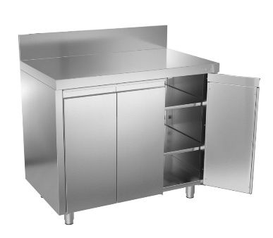 1200х600х870 мм, AISI 430, распашные двери, 2 полки, борт 150 мм НАЗНАЧЕНИЕ код: 315735 Столы технологические серии СТ «стандарт» применяются в различных производственных цехах предприятий общественного питания, супермаркетах, комбинатах пищевой промышленности для разделывания и обработки пищевых продуктов, а также в качестве вспомогательной поверхности для кухонного оборудования. Благодаря наличию закрытого объема их также можно использовать для хранения посуды, инвентаря, столовых приборов и сухих видов продуктов. ТЕХНИЧЕСКИЕ ХАРАКТЕРИСТИКИ Габаритные размеры (ДхШхВ), мм: 1150х600х870 Наличие борта: да Высота борта, мм: 150 Материал столешницы: нерж. сталь AISI430 Толщина металла столешницы, мм: 0,8 Материал подложки столешницы: ДСП Толщина подложки столешницы, мм: 16 Максимальная равномерно распределенная нагрузка на столешницу, кг: 100 Максимальная равномерно распределенная нагрузка на полку, кг: 30 Количество дверей, шт.: 3 Вид дверей: распашные Количество полок, шт.: 2 Масса, кг: 75 ПРЕИМУЩЕСТВА Двери, боковые панели и столешница выполнены из нержавеющей стали AISI430, углы столешницы заварены и зашлифованы, что обеспечивает гигиеническую безопасность и облегчает санитарную обработку Подложка столешницы из ДСП придаёт жесткость конструкции и исключает прогиб Ножки стола имеют регулируемые по высоте опоры, позволяющие компенсировать неровности пола в пределах ±20 мм Наличие полок позволяет увеличить полезное пространство в столе размещая на них посуду, инвентарь, столовые приборы и сухие виды продуктов Все кромки столешницы и элементов каркаса имеют подгиб, что полностью исключает получение травмы персоналом при сборке, эксплуатации и санитарной обработке стола Наличие борта позволяет располагать стол вдоль стены, исключая попадание остатков обрабатываемой продукции на пол, что значительно упрощает уборку помещения ТЕХНИЧЕСКОЕ ОПИСАНИЕ Стол технологический СТ имеет столешницу, изготовленную из нержавеющей стали AISI 430 толщиной 0,8 мм и усиленную подложкой из ДСП толщиной 16 мм. Борт у пристенной части высотой 150 мм является прямым продолжением столешницы. Все элементы стола, кроме дна и задней стенки, изготовлены из нержавеющей стали AISI 430 толщиной 0,8 мм. Дно и задняя стенка выполнены из оцинкованной стали. В комплект стола входят две полки, усиленные ребром жесткости. Ножки стола изготовлены из нержавеющей стали, имеют пластиковую опорную часть и регулируют высоту стола в пределах ±20 мм ХАРАКТЕРИСТИКИ УПАКОВКИ Количество упаковок, шт.: 1 Габариты в упаковке (ДхШхВ), мм: 1350х750х1150 Масса в упаковке, кг: 94,0 Тип упаковки: на поддоне с щитами и рамкой в стрейч пленке КОДЫ ИЗДЕЛИЙ ТНВД: 9403208009 ОКПД2: 31.02.10.110 Под заказ