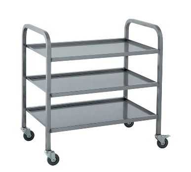850х530х900 мм, AISI304, 3 полки, 2 колеса с тормозом, сварная НАЗНАЧЕНИЕ код: 316485 Тележка сервировочная ТС предназначена для перемещения в зал приема пищи готовых блюд, напитков и посуды, а также для подачи грязной посуды из зала - в моечное отделение. ТЕХНИЧЕСКИЕ ХАРАКТЕРИСТИКИ Габаритные размеры (Д х Ш х В), мм: 850х530х900 Количество уровней: 3 Высота бортика полки мм: 20 Расстояние между уровнями, мм: 285 Максимальная распределенная нагрузка общая, кг: 150 Максимальная распределенная нагрузка на одну полку, кг: 50 Материал полки: нержавеющая сталь AISI304 Толщина металла полок, мм: 0,8 Материал стоек: нержавеющая сталь AISI 304 Профиль стоек: квадратная труба Сечение профиля стоек , мм: 25х25 Колесная опора без тормоза, шт: 2 Колесная опора с тормозом, шт: 2 Диаметр поворотных колес, мм: 75 Масса, кг: 16 ПРЕИМУЩЕСТВА Полки по периметру имеют герметичный бортик высотой 20 мм Тележка выполнена из нержавеющей стали AISI304 Две из четырёх колёсных опор оснащены тормозом Кромки направляющих имеют подгиб (фальцовку) для исключения травматизма персонала ТЕХНИЧЕСКОЕ ОПИСАНИЕ Тележка сервировочная ТС имеет сварную конструкцию. Рамы тележки изготовлены из нержавеющей трубы AISI 304 сечением 25х25 мм. К рамам приварены полки размером 750х500 мм, изготовленные из нержавеющей стали AISI 304. Полки по периметру имеют герметичный бортик высотой 20 мм. Высота просвета между полками в ТС-2 – 440 мм, ТС-3 – 210 мм. Суммарная грузоподъемность тележки составляет 150 кг. Нагрузка на каждую полку не должна превышать 50 кг. Тележка снабжена четырьмя колесами диаметром 75 мм, два из которых оснащено тормозом. ХАРАКТЕРИСТИКИ УПАКОВКИ Количество упаковок, шт.: 1 Габариты в упаковке (ДхШхВ), мм: 915х586х925 Масса в упаковке, кг: 18,5 Тип упаковки: Гофрокартонная коробка КОДЫ ИЗДЕЛИЙ ТНВД: 9403208009 ОКПД2: 25.99.12.112 Под заказ