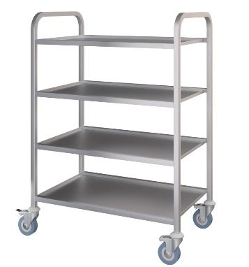 800х500х1100 мм, AISI304, 4 полки, 2 колеса с тормозом, сварная НАЗНАЧЕНИЕ код: 327389 Тележка сервировочная ТС предназначена для перемещения в зал приема пищи готовых блюд, напитков и посуды, а также для подачи грязной посуды из зала в моечное отделение. ТЕХНИЧЕСКИЕ ХАРАКТЕРИСТИКИ Габаритные размеры (Д х Ш х В), мм: 800х500х1100 Количество уровней: 4 Высота бортика полки мм: 20 Расстояние между уровнями, мм: 237 Максимальная распределенная нагрузка общая, кг: 160 Максимальная распределенная нагрузка на одну полку, кг: 40 Материал полки: нержавеющая сталь AISI304 Толщина металла полок, мм: 0,8 Материал стоек: нержавеющая сталь AISI 304 Профиль стоек: квадратная труба Сечение профиля стоек , мм: 25х25 Колесная опора без тормоза, шт: 2 Колесная опора с тормозом, шт: 2 Диаметр поворотных колес, мм: 75 Масса, кг: 19 ПРЕИМУЩЕСТВА Полки по периметру имеют герметичный бортик высотой 20 мм Тележка выполнена из нержавеющей стали AISI304 Две из четырёх колёсных опор оснащены тормозом Кромки направляющих имеют подгиб (фальцовку) для исключения травматизма персонала ТЕХНИЧЕСКОЕ ОПИСАНИЕ Тележка сервировочная ТС имеет сварную конструкцию. Рамы тележки изготовлены из нержавеющей трубы AISI 304 сечением 25х25 мм. К рамам приварены полки, изготовленные из нержавеющей стали AISI 304. Полки по периметру имеют герметичный бортик высотой 20 мм. Высота просвета между полками 237 мм. Суммарная грузоподъемность тележки составляет 160 кг. Нагрузка на каждую полку не должна превышать 40 кг. Тележка снабжена четырьмя колесами диаметром 75 мм, два из которых оснащено тормозом. ХАРАКТЕРИСТИКИ УПАКОВКИ Количество упаковок, шт.: 1 Габариты в упаковке (ДхШхВ), мм: 850х550х950 Масса в упаковке, кг: 23 Тип упаковки: Гофрокартонная коробка КОДЫ ИЗДЕЛИЙ ТНВД: 9403208009 ОКПД2: 25.99.12.112