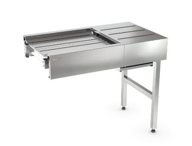 1030х600х850 мм, ширина ленты 450 мм НАЗНАЧЕНИЕ код: 18715 Транспортер для сбора грязной посуды «Каюр»-М предназначен для транспортировки грязной посуды из обеденного зала в посудомоечное отделение или для перемещения посуды внутри отделения. Натяжной модуль представляет собой часть транспортера, предназначенную для натяжения ленты. ТЕХНИЧЕСКИЕ ХАРАКТЕРИСТИКИ Габаритные размеры (Д х Ш х В), мм: 1030х600х850 Ширина используемой ленты, мм: 450 Масса, кг: 55 ПРЕИМУЩЕСТВА Перемещение посуды может осуществляться как поштучно, так и на подносах Конвейерная лента из тканевого основания и верхнего слоя из ПВХ позволяет уменьшить до минимума звук работы транспортера и обеспечить простоту его санитарной обработки Благодаря специальной конструкции направляющих, лента транспортера приобретает вогнутую форму, которая препятствует растеканию пролитых из посуды жидкостей При работе транспортера остатки пищи и жидкости удаляются с поверхности ленты скребком-очистителем и сбрасываются в специальный поддон Максимальная длина транспортера – до 20 метров Модуль оснащен кнопкой аварийного выключения транспортера ТЕХНИЧЕСКОЕ ОПИСАНИЕ Рабочая поверхность модуля выполнена из нержавеющей стали AISI430. Каркас выполнен из нержавеющей трубы сечением 40х40 мм (AISI201). Опорные ножки с пластиковой нижней частью регулируются по высоте в пределах ±20 мм. Модуль оснащен поддоном для сбора остатков пищи и кнопкой аварийного выключения транспортера. ХАРАКТЕРИСТИКИ УПАКОВКИ Количество упаковок, шт.: 1 Габариты в упаковке (ДхШхВ), мм: 1110х670х510 Масса в упаковке, кг: 65 Тип упаковки: ящик из ДВП на деревянном поддоне КОДЫ ИЗДЕЛИЙ ТНВД: 8428330000 ОКПД2: 28.12.17.111 под заказ