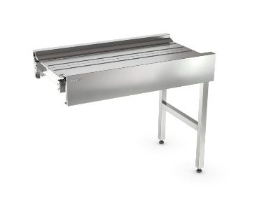 1015х600х850 мм, ширина ленты 450 мм НАЗНАЧЕНИЕ код: 18716 Транспортер для сбора грязной посуды «Каюр»-М предназначен для транспортировки грязной посуды из обеденного зала в посудомоечное отделение или для перемещения посуды внутри отделения. Промежуточная секция представляет собой часть транспортера, предназначенную для увеличения его длины на 1 метр до максимально возможной длины транспортера – 20 метров. ТЕХНИЧЕСКИЕ ХАРАКТЕРИСТИКИ Габаритные размеры (Д х Ш х В), мм: 1015х600х850 Ширина используемой ленты, мм: 450 Масса, кг: 44 ПРЕИМУЩЕСТВА Перемещение посуды может осуществляться как поштучно, так и на подносах Конвейерная лента из тканевого основания и верхнего слоя из ПВХ позволяет уменьшить до минимума звук работы транспортера и обеспечить простоту его санитарной обработки Благодаря специальной конструкции направляющих, лента транспортера приобретает вогнутую форму, которая препятствует растеканию пролитых из посуды жидкостей При работе транспортера остатки пищи и жидкости удаляются с поверхности ленты скребком-очистителем и сбрасываются в специальный поддон Максимальная длина транспортера – до 20 метров ТЕХНИЧЕСКОЕ ОПИСАНИЕ Промежуточный модуль предназначен для увеличения длины транспортера на 1 метр. Рабочая поверхность модуля выполнена из нержавеющей стали AISI430. Каркас выполнен из нержавеющей трубы сечением 40х40 мм (AISI201). Опорные ножки с пластиковой нижней частью регулируются по высоте в пределах ± 20 мм. ХАРАКТЕРИСТИКИ УПАКОВКИ Количество упаковок, шт.: 1 Габариты в упаковке (ДхШхВ), мм: 1100х680х470 Масса в упаковке, кг: 54 Тип упаковки: ящик из ДВП на деревянном поддоне КОДЫ ИЗДЕЛИЙ ТНВД: 8428330000 ОКПД2: 28.12.17.111 под заказ