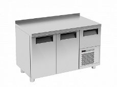 Холодильные столы 570 мм совмещают функции холодильного шкафа и полноценного рабочего стола. Идеально поддерживают темный интерьер баров и кондитерских. Данные столы могут использоваться как самостоятельная единица оборудования, так и встраиваться в барные стойки, глубиной от 600мм. Стол должен быть установлен не ближе 2 м от отопительных приборов. Запрещается эксплуатация стола при попадании на него прямых солнечных лучей, воздушных потоков от кондиционеров, вентиляторов и обогревателей. Стол загружают предварительно охлажденными до температуры полезного объема продуктами, равномерно располагая их на полках. Высота выкладки продуктов для демонстрации должна быть не более 200 мм, а расстояние от продуктов до стенок шкафа не менее 40 мм. Запрещается загораживать воздуховоды. При невыполнении требований нарушается циркуляция воздуха, эксплуатационные характеристики изделия ухудшаются, что может привести к порче пищевых продуктов. Нагрузка на решетку – не более 6 кг (для шкафа T57 М2-1-C – не более 10кг).