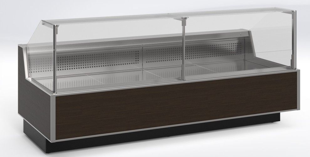 Отличается стильным кубическим дизайном, максимальной обзорностью выкладки и отсутствием бликов на стекле.