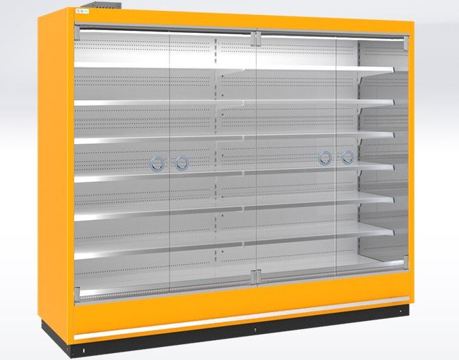 Охлаждаемый стеллаж RIMINI SG имеет дверной блок с одинарным К-стеклом. Данное решение обеспечивает эстетическую привлекательность - выглядит презентабельно и воздушно, создает максимальную обзорность выкладки и акцент на демонстрируемых продуктах. Это становится возможным ввиду отсутствия контура на дверных блоках (в сравнении с моделями RIMINI DG).  Для удобства покупателей, двери снабжены эргономичными ручками и самозакрывающемся механизмом дверей, что положительно сказывается на сохранении стабильного температурного режима внутри рабочего объема холодильного стеллажа и позволяет экономить электроэнергию.