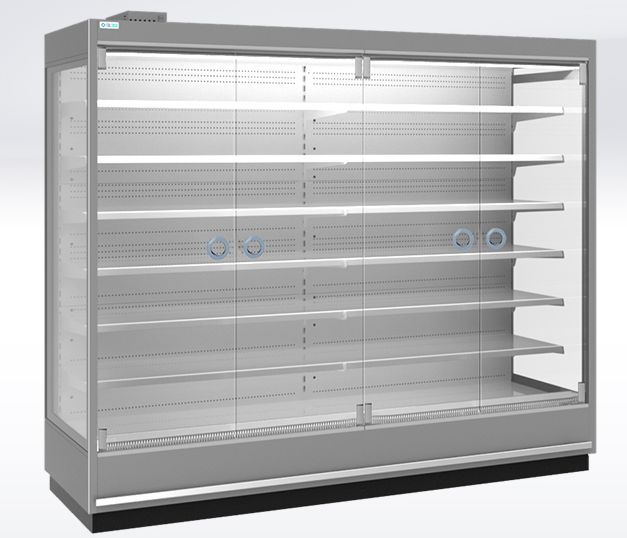 имеет дверной блок с одинарным К-стеклом. Данное решение обеспечивает эстетическую привлекательность - выглядит презентабельно и воздушно, создает максимальную обзорность выкладки и акцент на демонстрируемых продуктах. Это становится возможным ввиду отсутствия контура на дверных блоках (в сравнении с моделями RIMINI DG). Для удобства покупателей, двери снабжены вырубными эргономичными ручками и самозакрывающемся механизмом дверей, что положительно сказывается на сохранении стабильного температурного режима внутри рабочего объема холодильного стеллажа и позволяет экономить электроэнергию.
