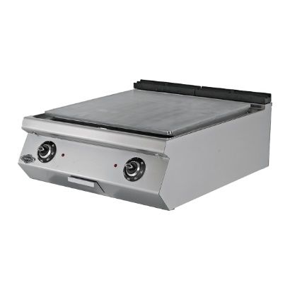 Электрический гриль 1/2 плоский+1/2 ребристый Мощность: 8,4 кВт Электрический входной сигнал 400 в. переменного тока 3Н ЧП Сечение кабеля 5х2,5 мм Термостатический контроль Две отдельные зоны нагрева. Съемный ящик для сбора жир. Легко чистится и гигиенический. Корпус из нержавеющей стали. Габариты: 800x730x300 мм Вес: 97 кг