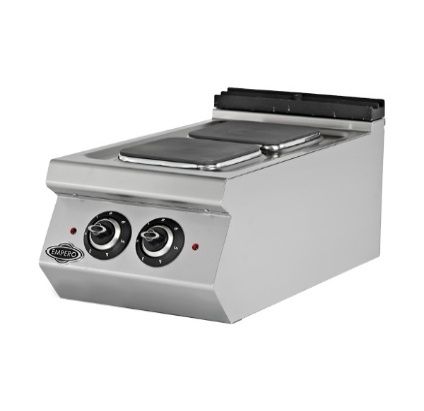 Электрическая плита 2 конфорочная (без подставки) Мощность: 4,5 кВт Электрический входной сигнал 200 в. переменного тока 3Н ЧП Сечение кабеля 3х2,5 мм 6 положений переключателей Легко чистится и гигиенический. Корпус из нержавеющей стали. Габариты: 400x730x300 мм Вес: 33 кг