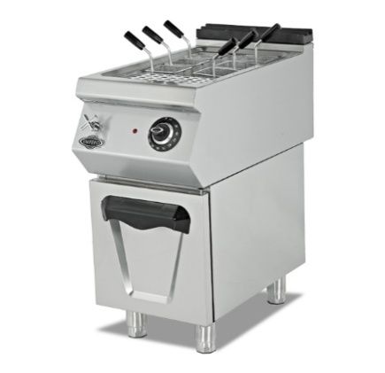 Электрическая макароноварка (без подставки) Мощность: 10,5 кВт Обьем: 10,5 Электрический входной сигнал 400 в. переменного тока 3Н ЧП Сечение кабеля 5х4 мм Термостатический контроль Корзины из нержавеющей стали. Кран для заполнение воды. Разгрузочный клапан. Переполнение дренажной системы. Легко чистится и гигиенический. Корпус из нержавеющей стали. Габариты: 400x730x300 мм Вес: 36 кг