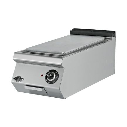 Электрический гриль плоский (без подставки) Мощность: 6 кВт Электрический входной сигнал 400 в. переменного тока 3Н ЧП Сечение кабеля 5х2,5 мм Термостатический контроль Две отдельные зоны нагрева. Съемный ящик для сбора жир. Корпус из нержавеющей стали. Габариты: 400x900x300 мм Вес: 62 кг