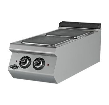 Электрическая плита 2 конфорочная (без подставки) Мощность: 8 кВт Электрический входной сигнал 400 в. переменного тока 3Н ЧП Сечение кабеля 5х2,5 мм 6 положений переключателей Легко чистится и гигиенический. Корпус из нержавеющей стали. Габариты: 400x900x300 мм Вес: 45 кг