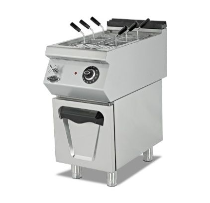 Электрическая макароноварка (с закрытой подставкой) Мощность: 12 кВт Обьем: 10,5 л. Электрический входной сигнал 400 в. переменного тока 3Н ЧП Сечение кабеля 5х4 мм Термостатический контроль Корзины из нержавеющей стали. Кран для заполнение воды. Разгрузочный клапан. Корпус из нержавеющей стали. Габариты: 400x900x850 мм Вес: 46 кг