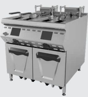 Фритюрница быстрого приготовления с подъемным механизмом и масляным фильтром Возможность записи 10 программ готовки Touch screen дисплей 4,3 дюйма Органичивающий термостат Система очистки масла Звуковые сигналы оповещения готовности продукта Автоматическое заполнение фильтра для масла Мощность 42 кВт Размер 800х900х850 Вместимость 25+25 литров Вес 139 кг.