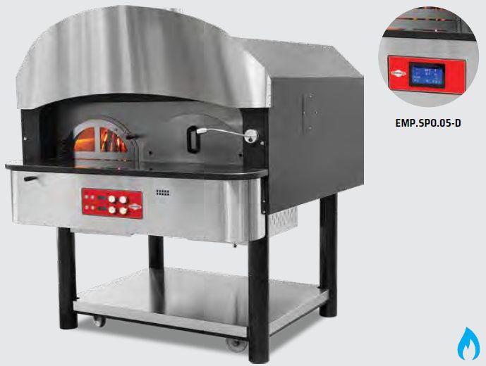 Работает на газе или дровах, Регулируемое время приготовления и цифровой индикатор, Регулируемая температура приготовления в диапазоне 0-400 °C., 220В 50/60 Гц. Адаптируется к сжиженному газу или природному газу. Быстрый и лучший процесс приготовления благодаря термической стабильности, Вращение обеспечивает однородное приготовление, Внутренняя высота: 515 мм, Внутренний диаметр камня: 1000 мм., Размер двери: 650х270 мм. Модель Digital имеет 7-дюймовый сенсорный ЖК-экран управления. Расход газа: природный - 4,35 м3/ч, сжиженный - 3,72 кг/ч