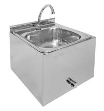 Настенный с бедренным приводом, борт 40мм. Размер мойки 310*265*160мм. В комплекте: сифон, переходная шайба, бедренный привод, гусак, смеситель.
