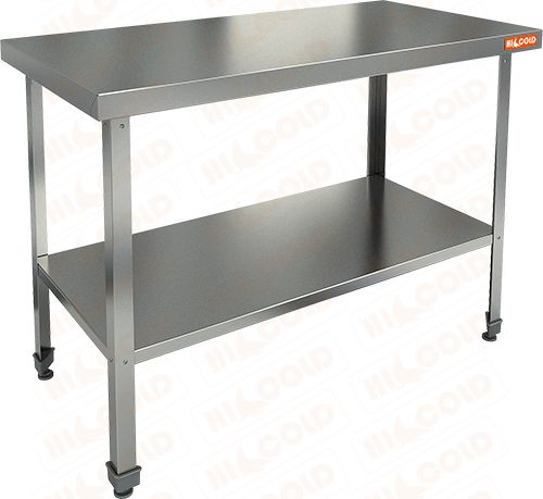 Материал каркаса: нержавеющая сталь AISI430 (0,8 мм); Материал столешницы: нержавеющая сталь AISI430 (0,8 мм); Тип каркаса: уголок 40х40 мм; Тип столешницы: усиленная ДСП