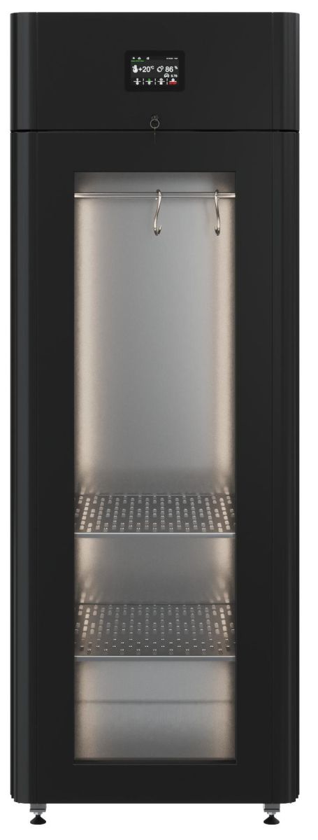 Модель CS107-Meat (black) предназначена для ферментации мяса, процесса, необходимого для придания стейкам Dry Aged столь высоко ценимых гурманами богатого вкуса, насыщенного аромата, нежной структуры и аппетитного внешнего вида. Сухое созревание позволяет получить самые качественные и дорогие стейки. Шкаф CS107-Meat дает возможность получить стейки разной степени выдержки в течение того количества дней, которые необходимы для их вызревания. Повысив при этом их маржинальность, ведь при наличии на предприятии шкафа есть смысл приобретать совсем свежее сырье, существенно более дешевое, чем ферментированное. Ферментация важна и для придания более глубокого вкуса продуктам переработки мяса, не только говядины, но и иных сортов. В результате блюда из него будут более вкусными и привлекательными для покупателей. Шкаф дает возможность установить нужные температуру и влажность воздуха внутри объема для каждого этапа ферментации, управлять воздействием UV-лампы, защитить содержимое от плесени и вредных микроорганизмов, разместить сырье самым оптимальным образом на полках из нержавеющей стали или на штанге для подвешивания крупных отрубов. Стеклопакет двери позволяет следить за процессом созревания и демонстрировать премиальные мясные продукты в стейк-хаусе, ресторане, специализированном магазине или отделе. Внешние обшивки корпуса и двери шкафов выполнены из стали, окрашенной в стильный черный цвет, внутренние обшивки – из нержавеющей стали.