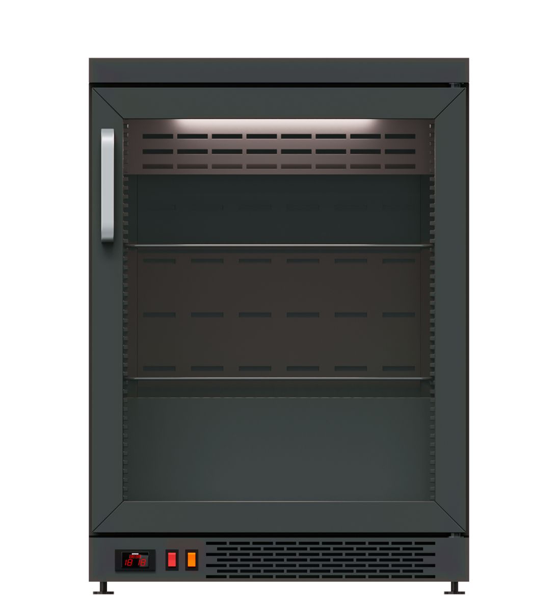 Модель черного цвета – идеальное решение для любого бара, кафе, ресторана, буфета и т.п. Подходит для встраивания в барную стойку и пристенный модуль, может использоваться как сомостоятельный пристенный модуль. Правостороннее открывание дверей со стеклопакетами в алюминиевых рамах может быть заменено на левостороннее – на заказ. Возможна поставка без столешницы – как обыкновенный холодильный шкаф. Высота без столешницы – 810 мм.