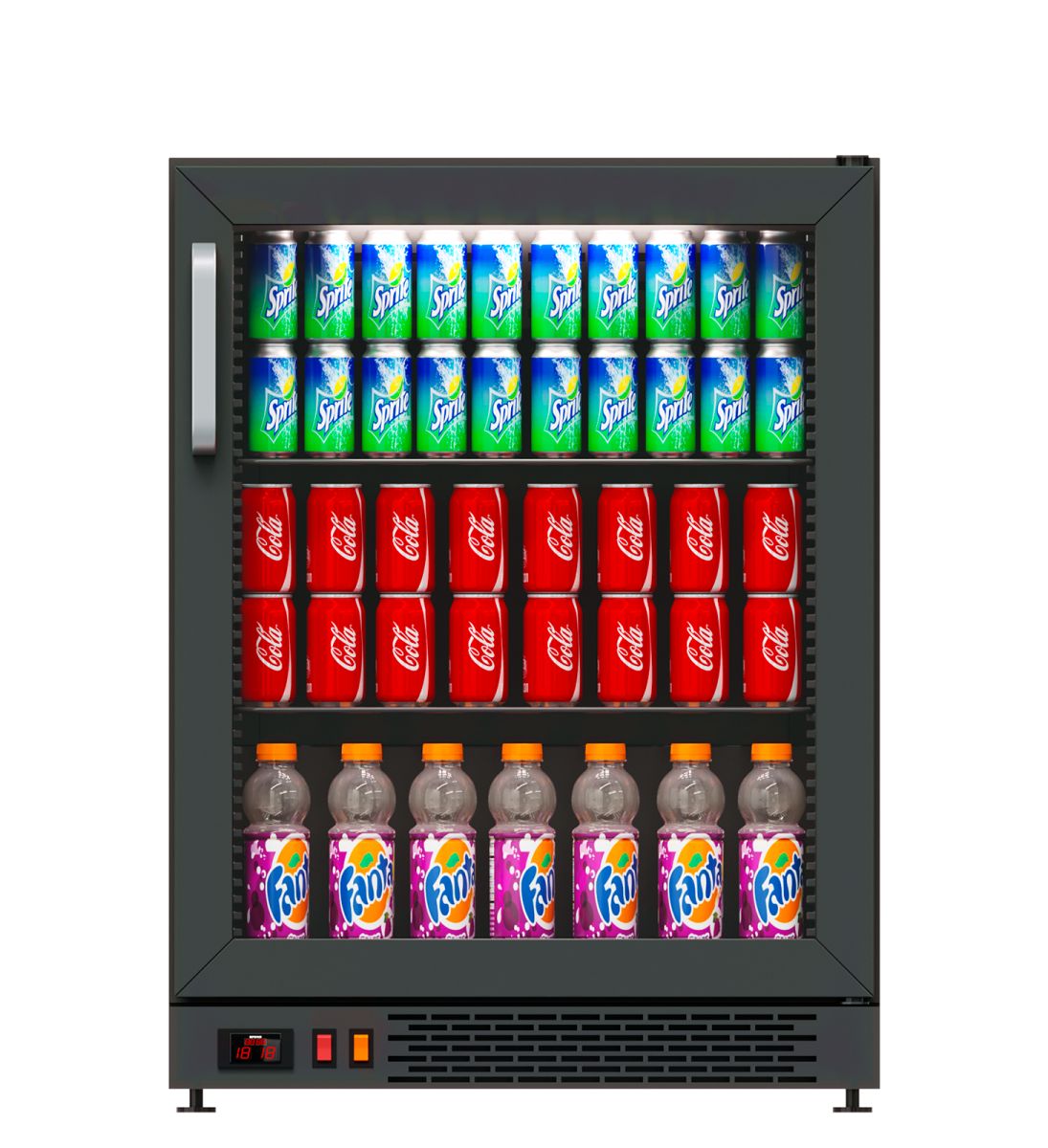 Модель черного цвета – универсальное решение для любого бара, кафе, ресторана, буфета и т.п. Идеальное решение для встраивания в барную стойку и пристенный модуль, элементы мебели и строительные конструкции. Важно оставлять с каждой стороны стола/шкафа зазор в 10 мм, а с задней стороны – 20 мм. Поставка без столешницы позволяет разместить модель практически под любой общей столешницей, создавая стилистическое единство дизайна и делая более удобной работу персонала. Правостороннее открывание дверей со стеклопакетами в алюминиевых рамах может быть заменено на левостороннее – на заказ.
