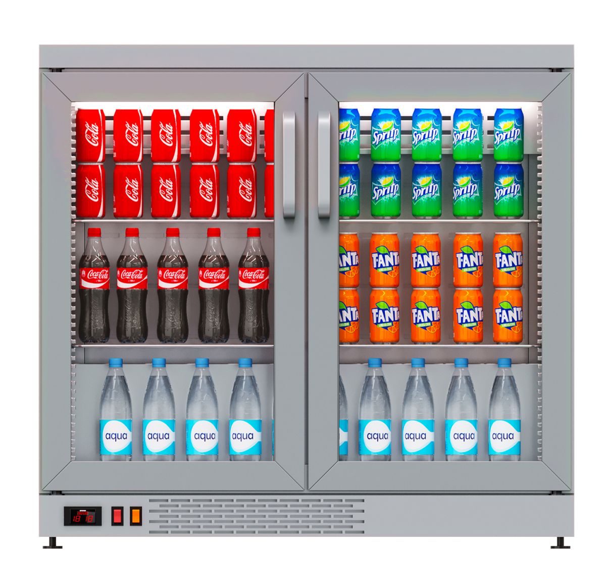 Двухдверный стол/шкаф изготовлен из нержавеющей стали – снаружи и изнутри. Рамы распашных дверей изготовлены из алюминия светло-серого цвета и оснащены легкозаменяемым уплотнителем с магнитной вставкой. Подходит для встраивания в барную стойку и пристенный модуль (при встраивании необходимо обеспечить отступ в 10 мм с каждой из сторон, со стороны задней стенки – 20 мм), может использоваться как самостоятельный пристенный модуль и как полноценный рабочий стол – при поставке со столешницей. Возможна поставка без столешницы. Высота стола без столешницы – 810 мм. Подсветка – двойная вертикальная.