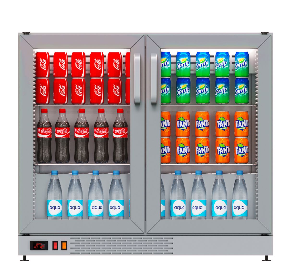 Двухдверный стол/шкаф изготовлен из нержавеющей стали – снаружи и изнутри. Рамы распашных дверей изготовлены из алюминия светло-серого цвета и оснащены легкозаменяемым уплотнителем с магнитной вставкой. Подходит для встраивания в барную стойку, пристенный модуль, нишу, мебельные конструкции (при встаривании необходимо обеспечить отступ в 10 мм с каждой из сторон, со стороны задней стенки – 20 мм. Подсветка – двойная вертикальная.