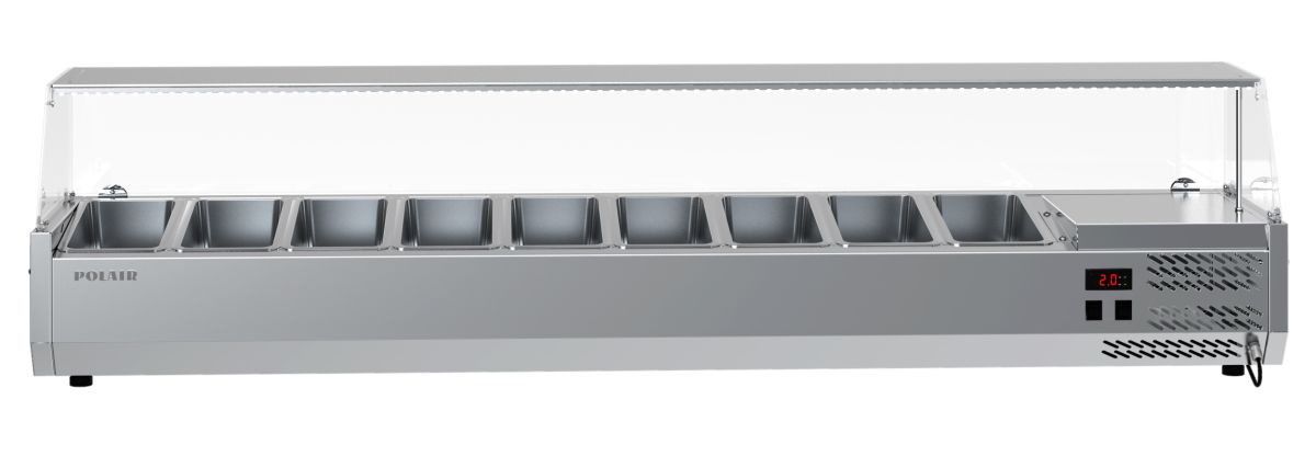 Витрина для ингредиентов позволяет разместить 9 гастроемкостей GN1/3* в наклонном в сторону пиццайоло положении. Предназначена для комплектации стола TM3ENpizza с установкой на его гранитные борта. Может устанавливаться и на любую ровную поверхность. Стеклянная надстройка с подсветкой защищает содержимое витрины и улучшает условия работы пиццайоло. * гастроемкости в комплект поставки не входят