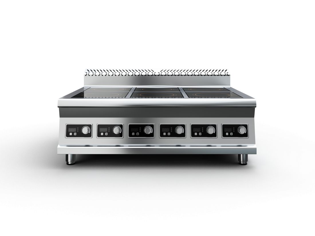 Плита индукционная, столешница из нержавеющей стали марки AISI 430 толщиной 1 мм, корпус из нержавеющей стали марки AISI 430 толщиной 0,8 мм. Имеет 6 конфорок мощностью по 3,5 кВт, питание 380 В. Габариты стеклокерамики 280х280х6 мм. Поставляется в собранном виде.
