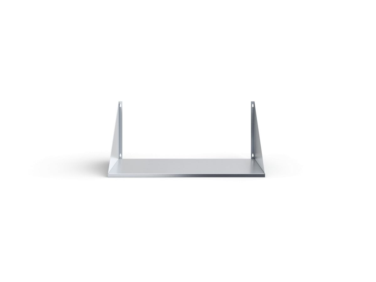 Полка настенная выполнена из из стали марки AISI 430 и толщиной 0,8 мм. Состоит из двух уголков косынок и одной полки. Максимально рекомендуемая равнораспределенная нагрузка на полку - 40 кг.