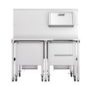 Стол изготовлен из нержавеющей стали марки AISI 430 толщиной 0,8 мм. Усиленная столешница с подложкой из фанеры толщиной 16 мм. Столешница и каркас выполнены из нержавеющей стали AISI 430. Стол оснащен сплошной полкой из стали марки AISI 430 толщиной 0,8 мм. Ножки регулируются по высоте. У производственного стола имеется съёмный борт, что позволяет использовать стол, как в пристенном, так и островном варианте. Борт устанавливается на месте при монтаже, по желанию клиента.